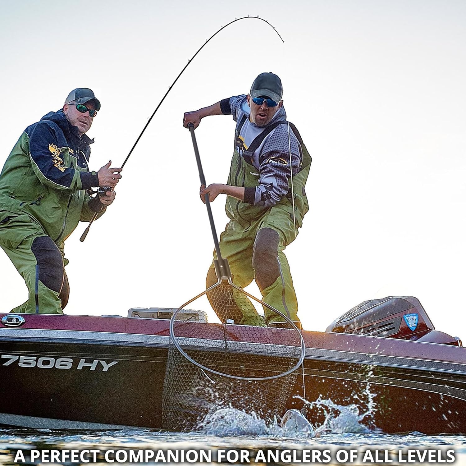High Strength Large Landing Net – Telescoping Fishing Net with 2 Section Long Handle and Soft Rubber Net, Kayak/Fly Fishing Net – Overall Length: 60″, Hoop Size 23″ x 18″, Depth 19.5″