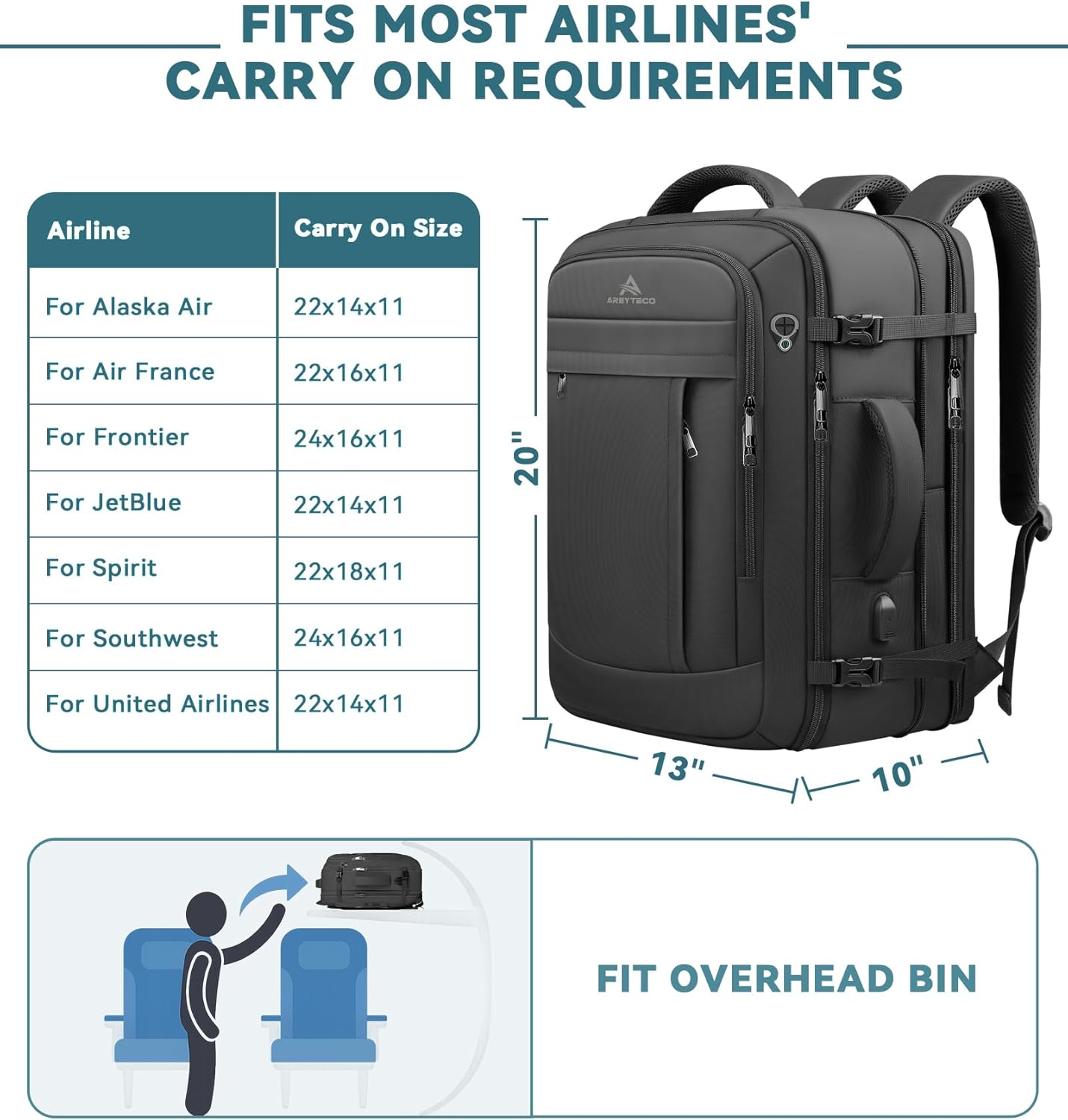 Travel Backpack, 50L Expandable Extra Large Laptop Backpack, Carry On Backpack Airline Approved Water Resistant Business Suitcase Daypack Bag Fits 17 Inch Laptops, Travel Gifts for Men Women, Black